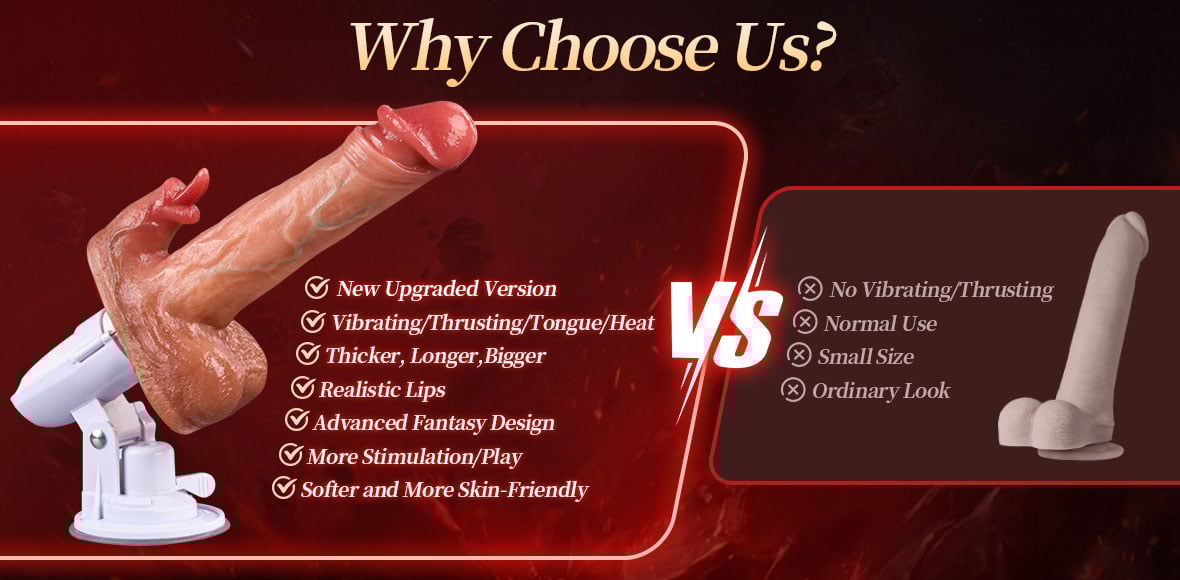 - Vibrating & thrusting & licking & heating & sex machine – 5 in 1 vibrator.