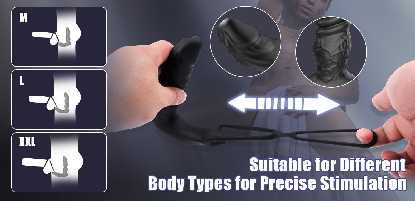 The anal vibrator, prostate massager, and penis ring are 3 in 1 to prolong your sexual experience and enjoy double fun! Dildo shape to experience life-like penis entry hitting your P-spot directly for up to 10 minutes of non-ejaculatory pleasure. At once, the high elasticity penis ring stretches to stop your urge to ejaculate early allowing you and your partner to indulge in a longer sexual experience, and your partner will satisfy you like never before.